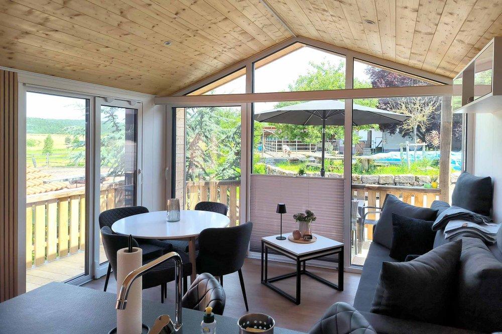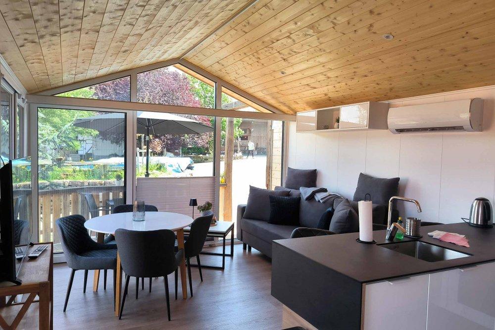 In unserem neuen, modernen Tiny House sind auf kleinem Raum alle Annehmlichkeiten einer komfortablen Unterkunft vereint. Das Tiny House, ausgestattet mit Fußbodenheizung und Klimaanlage, bietet Platz für bis zu 4 Personen. Es verfügt über:
